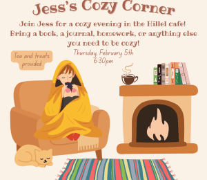 Join Jess for a cozy evening in the Hillel cafe!