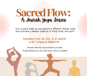 This is an all levels class. Modifications will be available for those new to yoga or for advanced practitioners. Note: no hands on adjustments will be offered. Please wear comfortable clothes. You may bring your own mat or use one available at Hillel.