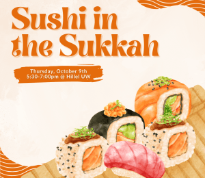 Roll on over to Hillel for some sushi in the sukkah! Sukkot is the holiday of gathering, and we're looking forward to gathering with while munching on some sushi, noodles, and other side dishes and treats!
