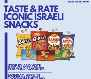 Come down to the Quad to taste & rate your favorite Israeli snacks and treats!